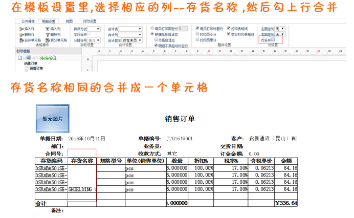 3、表体同列相邻多行内容相同的字段,支持合并成一行输出