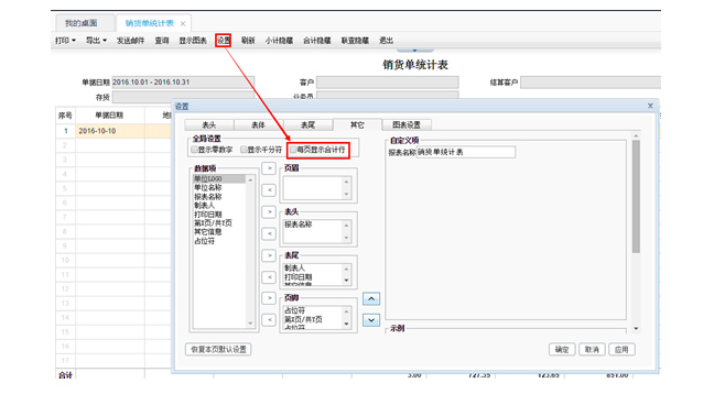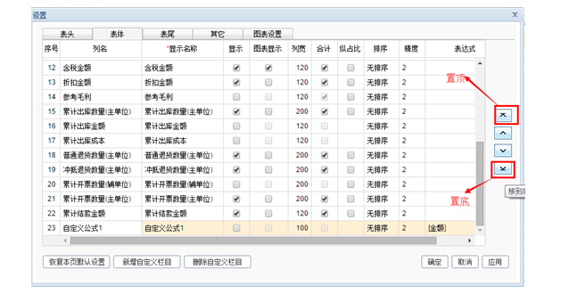 4、报表、单据、查询条件设置优化、增加置顶和置底功能。